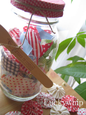 瓶の中には、布の切れ端をランダムに入れる。