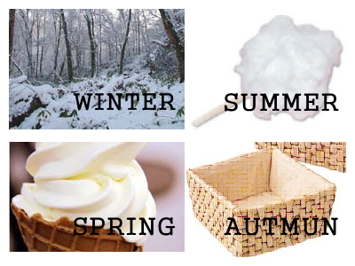 その黄色の単語カードをあえて他の季節のグループの中に置いてみるんです。