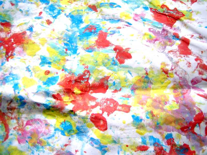 大きな模造紙に、好きな色の絵の具を手に直接とり、